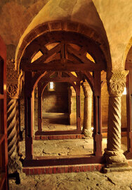 Burg Lohra im südwestlichen Vorharz ist eine der größten Burganlagen Thüringens.Das Gelände war bereits in frühgeschichtlicher Zeit besiedelt. Im 10. und 11. Jahrhundert ist an der Stelle der heutigen Burg eine königliche Befestigungsanlage belegt, im 12. und 13. Jahrhundert war die Burg Sitz der Grafen von Lare, die eine außerordentlich enge Bindung zum staufischen Königshaus hatten. Unter Graf Ludwig III. (1162–1214) erlebte die Burg ihre Blüte und wurde großzügig zu einer pfalzartigen Anlage ausgebaut. In dieser Zeit entstand die romanische Doppelkapelle, das kunstgeschichtlich wertvollste Zeugnis der Burg, die eines der wenigen erhaltenen Beispiele dieses seltenen mittelalterlichen Kirchentyps darstellt. Auch der ehemals imposante Bergfried, von dem sich, nachdem er später als Steinbruch genutzt wurde, lediglich ein Stumpf erhalten hat, ist neueren Forschungen zufolge in diese Zeit zu datieren. Das in alten Sekundärquellen angegebene Erbauungsjahr 1064 dürfte hingegen wissenschaftlichen Untersuchungen nicht standhalten.