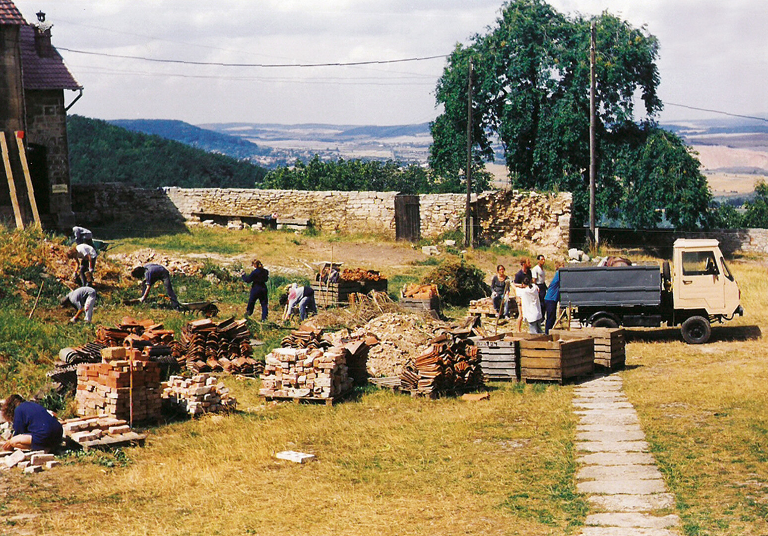 Die Unterkunftsverhältnisse waren außerordentlich einfach, der Umfang der Arbeiten an der Burganlage unüberschaubar. Die Frage der Finanzierung der Materialien und Werkzeuge trat, wenige Jahre nach dem Ende der sozialistischen Plangesellschaft, hinter der Freude, sich endlich frei und ungegängelt engagieren zu dürfen, zurück.