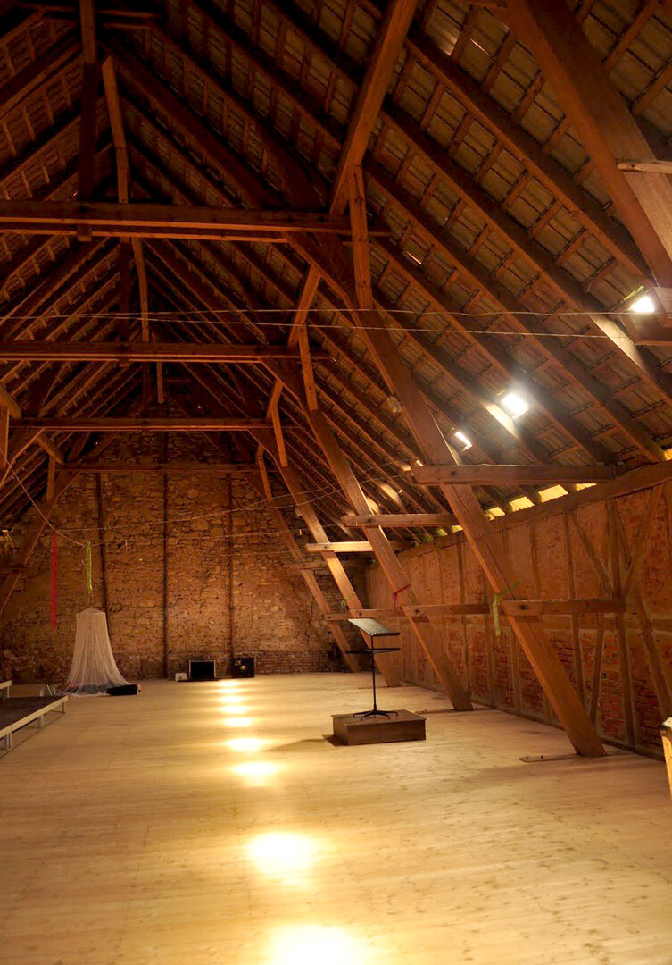 Der ehemalige Kornspeicher in der Kernburg ist ein überaus reizvoller Raum von 22 x 11 Metern mit hölzernem Fußboden. Er ist als Proben- und Arbeitsraum gut geeignet, jedoch nicht heizbar.