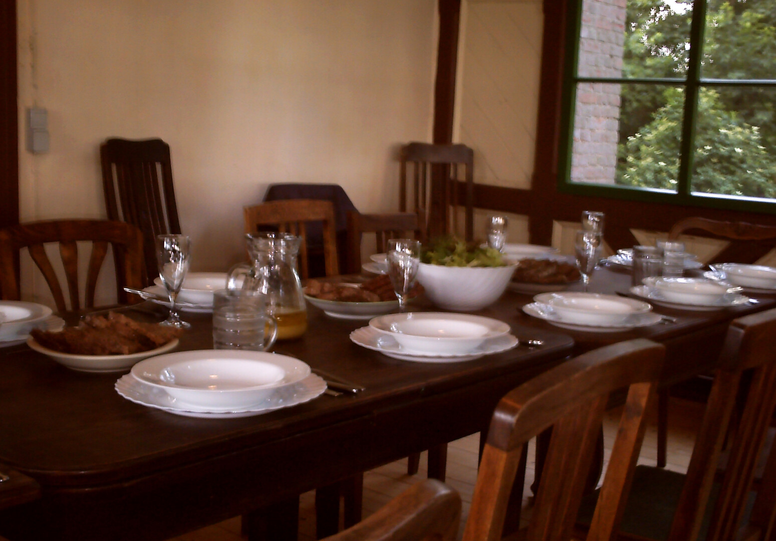 Nutzt eine Gruppe die Zeltmöglichkeiten nicht ergänzend zu den Übernachtungsmöglichkeiten im Haus, sondern ausschließlich, können, soweit es die Belegung des Hauses erlaubt, zusätzlich die separate Dusche im ersten Obergeschoss sowie der kleinere Speiseraum und die kleinere der beiden Küchen zur Verfügung gestellt werden.
